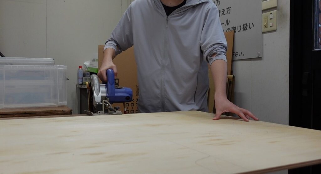 次に、型取りした線に沿って合板をカットしていきます。いよいよ工具を使う時がきました…!